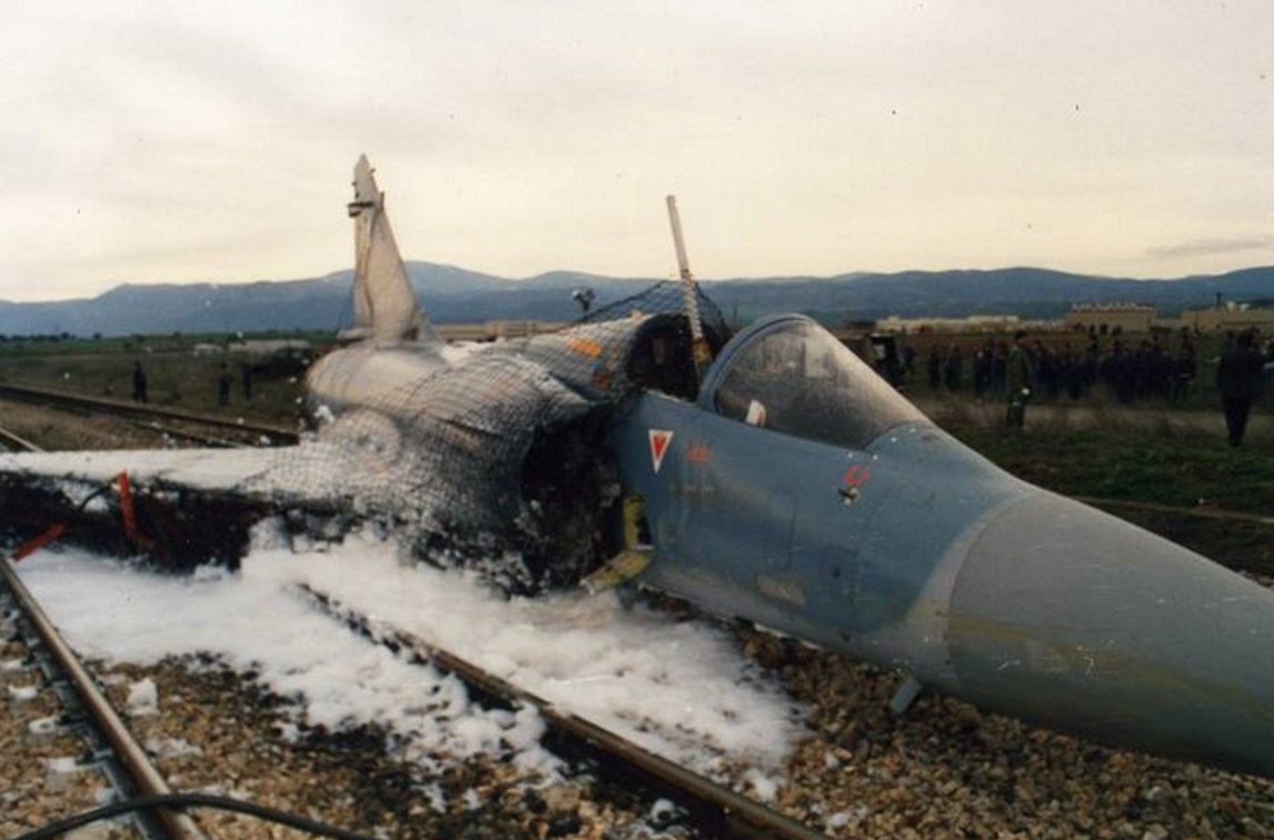 To 1991 μαχητικό Μirage 2000EGM της 331 Μοίρας της 114 ΠΜ “προσγειώθηκε” μόνο του (!) μετά από εγκατάλειψή από τον χειριστή του στις γραμμές του τραίνου κοντά στην νότια περίμετρο της αεροπορικής βάσης της Τανάγρας.