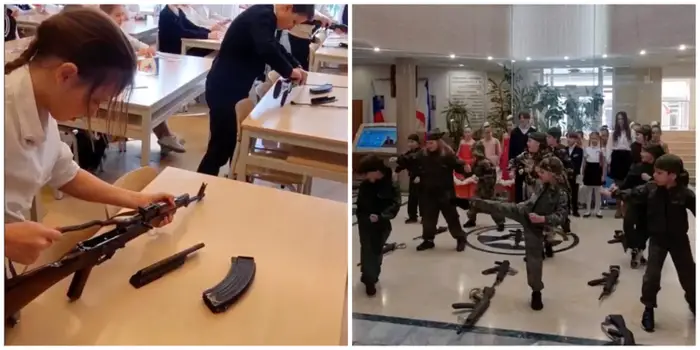 Στην Ρωσία οι μαθητές εκπαιδεύονται στα όπλα μέσα στην αίθουσα διδασκαλίας με πραγματικά πυρά όπως δείχνει βίντεο που είδε το «φως» της δημοσιότητας.