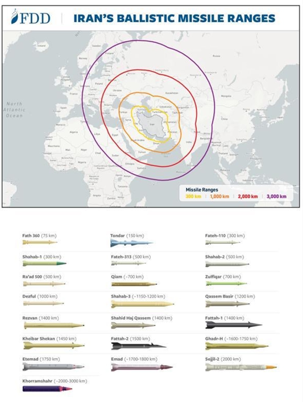 Κατά τη σύντομη σύγκρουση με το Ισραήλ τον Ιούνιο του 2025, καθώς και σε δύο ανταλλαγές πυρών το 2024 (τον Απρίλιο και τον Οκτώβριο), το Ιράν εκτόξευσε εκατοντάδες πυραύλους.