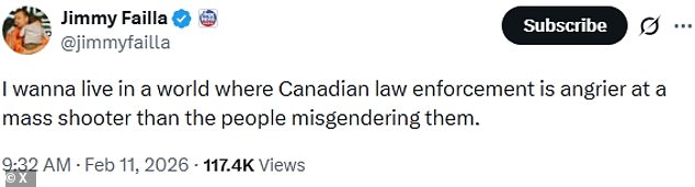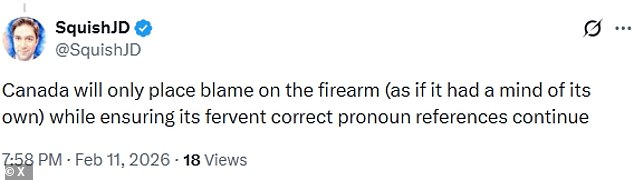 «Το γεγονός ότι η καναδική κυβέρνηση ανησυχεί περισσότερο για την ταυτοποίηση του δολοφόνου με τη σωστή αντωνυμία παρά για τα θύματα θα πρέπει να κάνει την Αλμπέρτα να ψηφίσει 100% υπέρ της αποχώρησης από τον Καναδά», έγραψε ένας χρήστης του X.