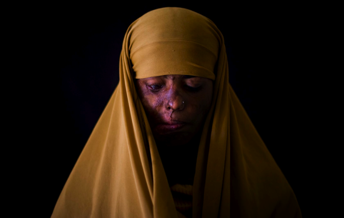 Η Memuna Khan, 21 ετών, από το Karachi του Pakistan, 19 Δεκεμβρίου 2012. Η Menuna δέχθηκε επίθεση με οξύ από μια ομάδα αγοριών μιας οικογένειας με την οποία η οικογένεια της Memuna είχε διαφορές. Έκτοτε έχει υποβληθεί σε 21 χειρουργία για να διορθώσει το πρόσωπό της.