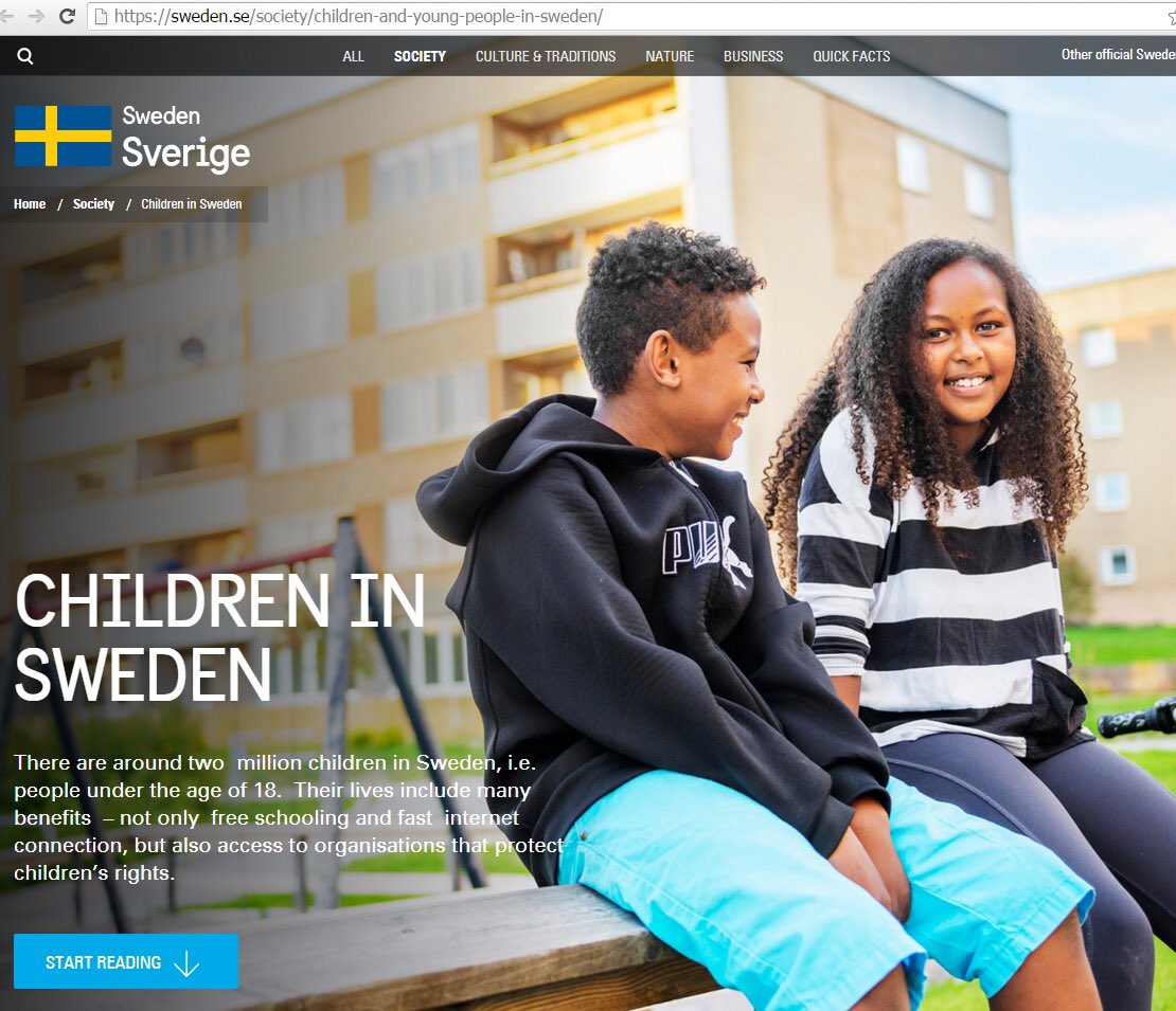 “Παιδιά στην Σουηδία”. Από επίσημη κρατική σουηδική ιστοσελίδα. Προσέξτε την απουσία γηγενούς Σουηδού