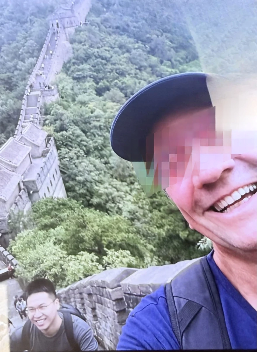 Σε άλλη φωτογραφία εμφανίζεται ο ίδιος, ως χαμογελαστός τουρίστας στο Σινικό Τείχος τόσο με τον Στίβεν, όσο και με τον ανώτερο αυτού, που έχει κατονομασθεί ως «Γουίλιαμ».