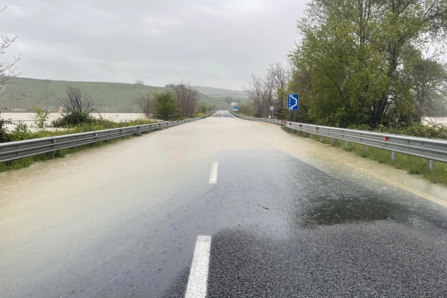 Εικόνες καταγράφουν τον πλημμυρισμένο δρόμο Bifernina στο Τέρμολι της περιφέρειας Μολίζε, ο οποίος παραμένει κλειστός.