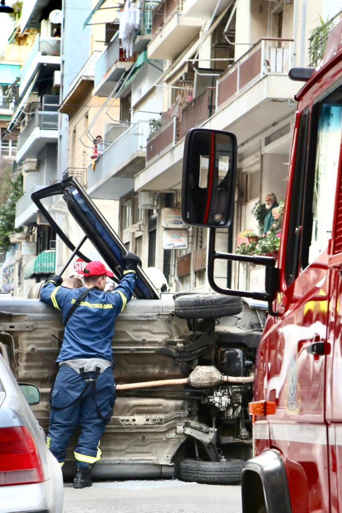 Τροχαίο ατύχημα στην Κυψέλη: Αναποδογύρισε όχημα στη μέση του δρόμου – Απεγκλωβίστηκε ο οδηγός του (φωτο-upd)