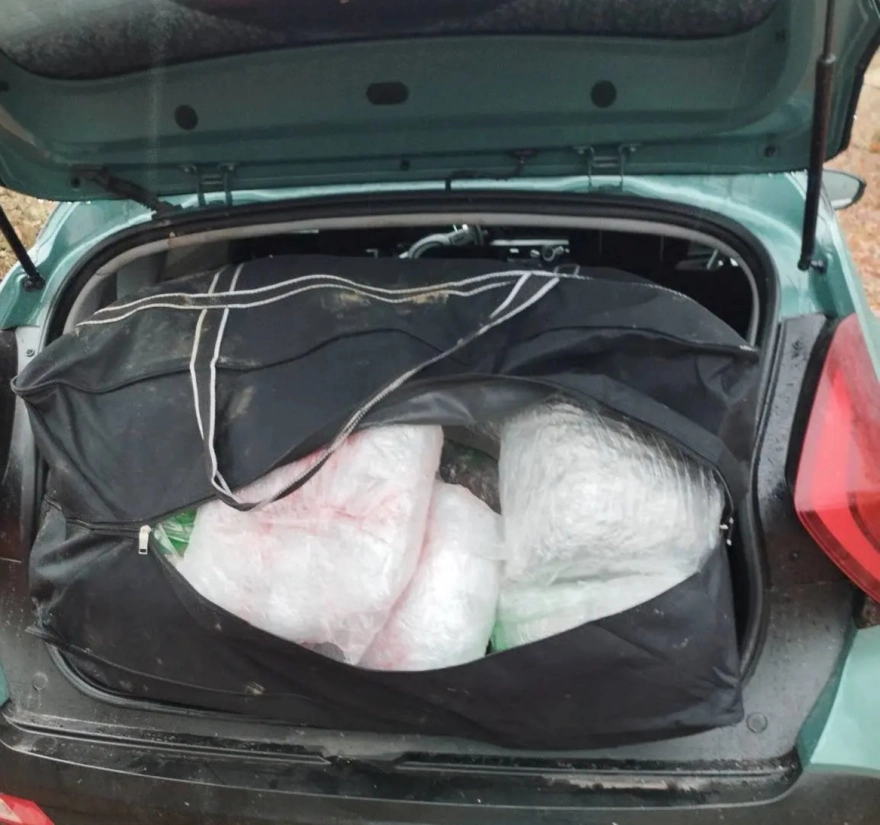 Κατά τον έλεγχο του αυτοκινήτου, οι αστυνομικοί εντόπισαν μεγάλη ποσότητα ναρκωτικών, καθώς βρέθηκαν τρεις ταξιδιωτικοί σάκοι που περιείχαν συνολικά 76 κιλά και 100 γραμμάρια ακατέργαστης κάνναβης.