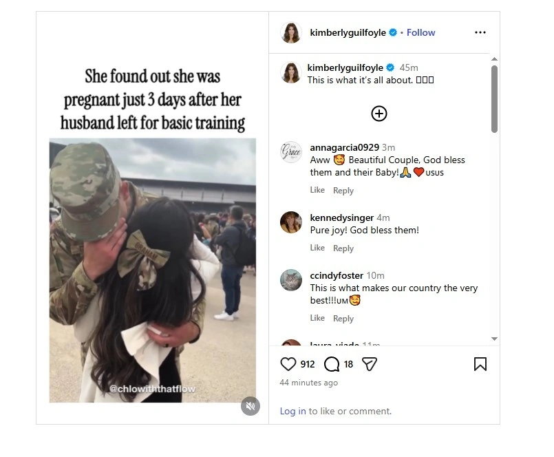 Στο βίντεο καταγράφεται η στιγμή που μια γυναίκα υποδέχεται τον σύζυγό της μετά την ολοκλήρωση της βασικής του εκπαίδευσης στον αμερικανικό στρατό. Λίγες ημέρες αφότου εκείνος είχε αναχωρήσει, η ίδια είχε μάθει πως είναι έγκυος.