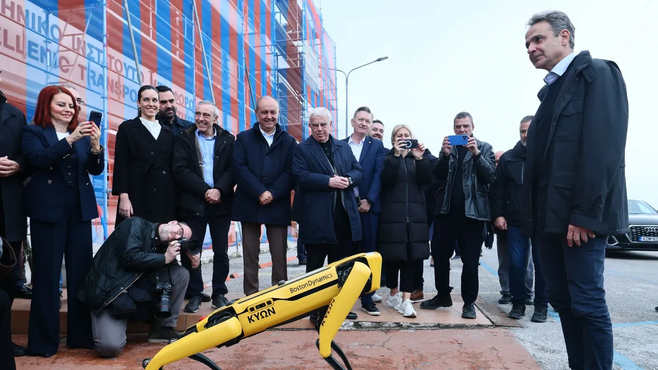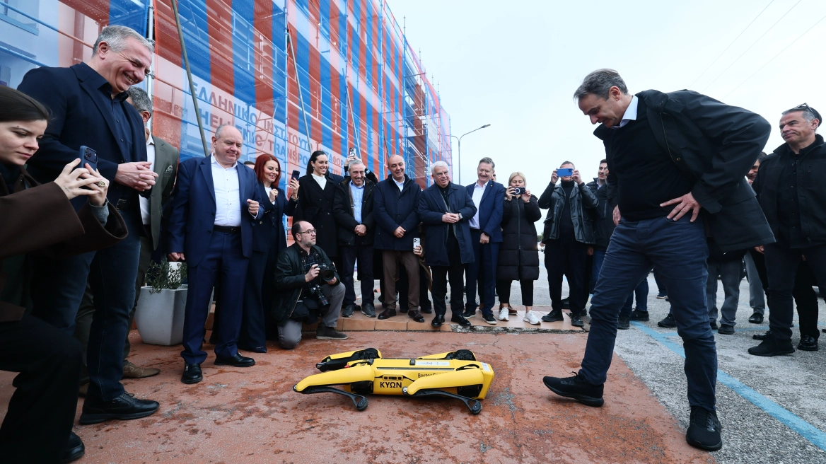 Ο ρομποτικός σκύλος του Ινστιτούτου Μεταφορών στη Θεσσαλονίκη επιφύλαξε μια ιδιαίτερα θερμή και πειθαρχημένη υποδοχή στον πρωθυπουργό Κυριάκο Μητσοτάκη, σήμερα 24/3/2026.