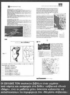 Στο νέο βιβλίο «Γεωγραφία της Αλβανίας», που εκδόθηκε φέτος και ήδη αποτελεί διδακτική ύλη στα λύκεια της χώρας, οι μαθητές διδάσκονται όχι μόνο για τη γεωγραφία της χώρας τους αλλά και για περιοχές όμορων χωρών που, σύμφωνα με τους συγγραφείς, κατοικούνται από Αλβανούς.